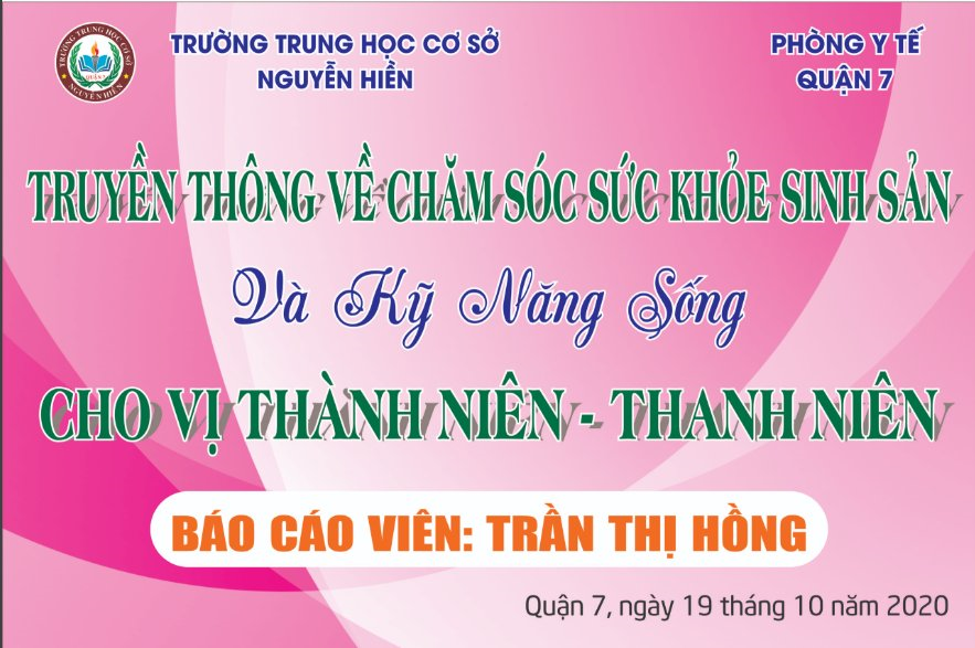 Chiều ngày 19/10/2020, tại sân trường THCS Nguyễn Hiền, nhà trường đã phối hợp cùng Phòng Y Tế Quận 7 tổ chức buổi sinh hoạt "Truyền thông về chăm sóc sức khỏe sinh sản và kỹ năng sống cho vị thành niên - thành niên"